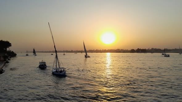 المراكب الشراعية لحظات غروب الشمس بالأقصر