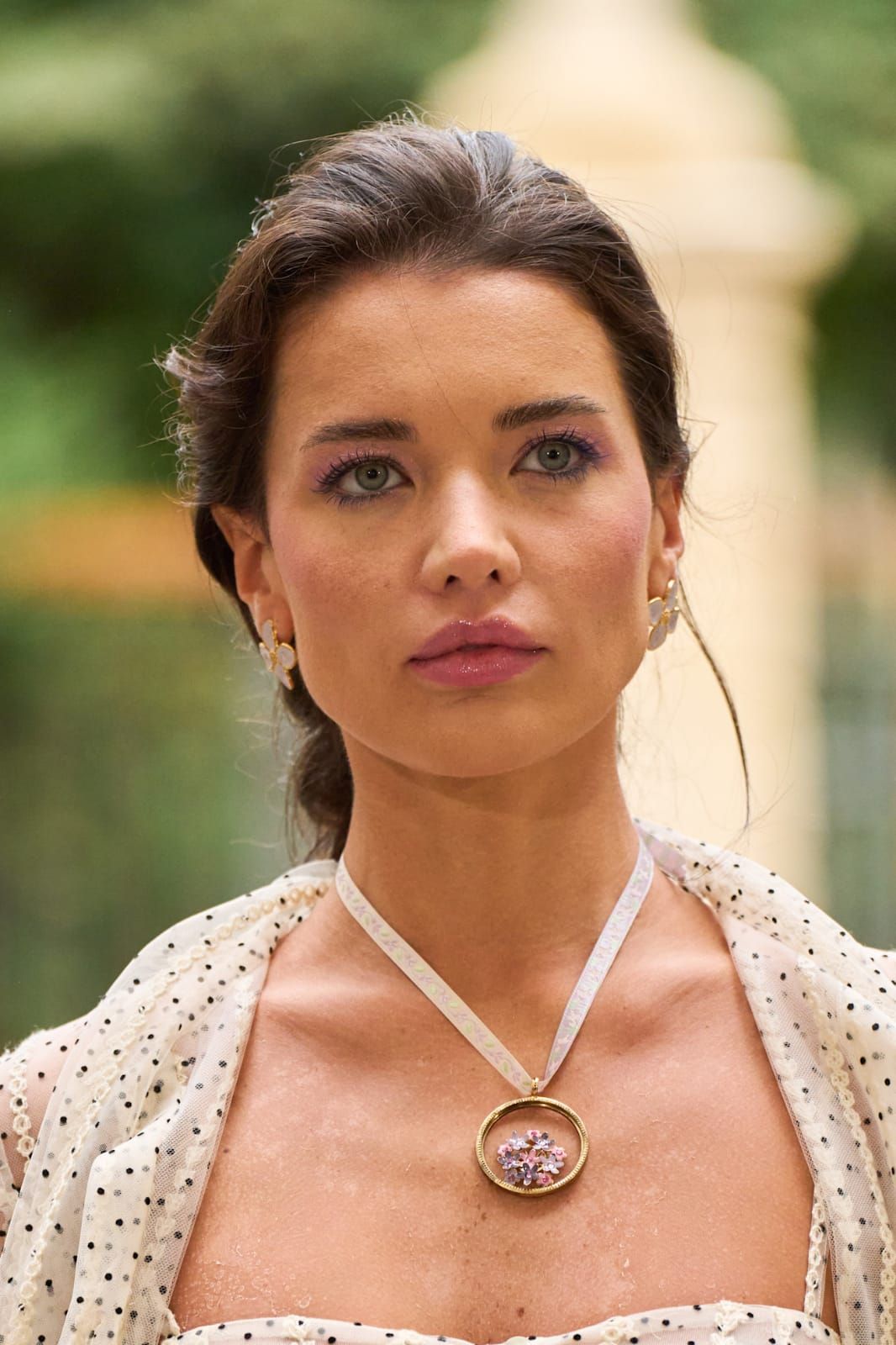 تعتمد هذه الإطلالة على ظلال عيون زهرية هادئة موزعة بخفة حول الجفن لمنح العين إشراقاً ناعماً. اللون مدموج بسلاسة دون حدة؛ ما يضيف عمقاً للنظرة مع الحفاظ على أنوثة الإطلالة. تنسجم الظلال مع البشرة الطبيعية والخدود الوردية لتعكس إحساساً ربيعياً منعشاً. خيار مثالي لربيع وصيف 2026 للمرأة التي تحب اللون بأسلوب راقٍ وغير مبالغ فيه.