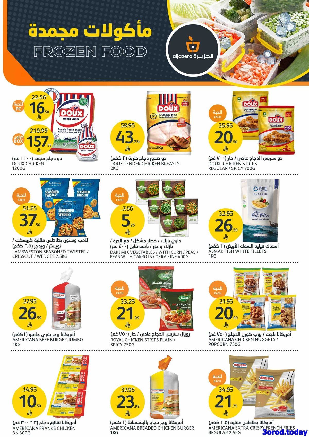 أسواق الجزيرة الأسبوعية الأربعاء 14 يناير 2026 الموافق 28-7-1447هـ تقدم تشكيلة من المواد الغذائية الأساسية مثل أرز كالروز وزيت الزيتون المنكه وشرائح الجبنة السويسرية ومربى التوت البري وطحينة الحلاوة وتتبعها عروض الأجهزة المنزلية و تضم محضرة السلطة الكهربائية ومكينة صنع الثلج الكبيرة ومروحة بدون شفرات وفرن تحميص ومكواة بخار .