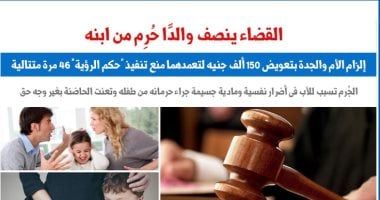 القضاء ينصف والدًا حُرِم من ابنه.. إلزام الأم والجدة بتعويض 150 ألف جنيه لتعمدهما منع تنفيذ "حكم الرؤية" 46 مرة متتالية.. تسبب للأب فى أضرار نفسية ومادية جسيمة جراء حرمانه من طفله وتعنت الحاضنة بغير وجه حق