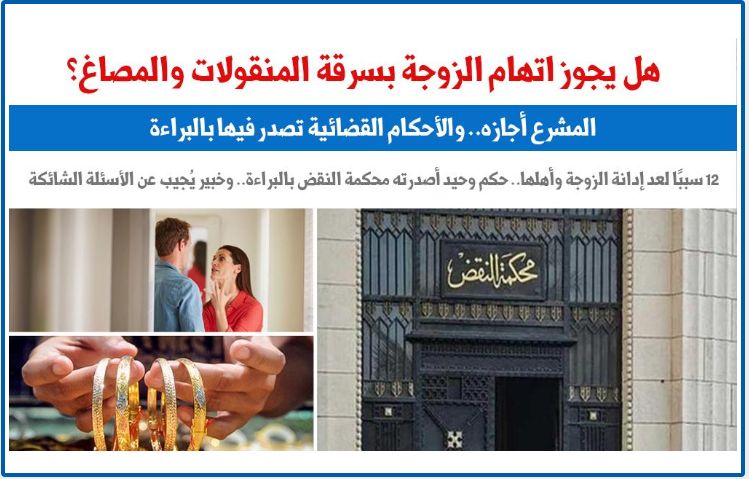هل يجوز اتهام الزوجة بسرقة المنقولات والمصاغ؟.. المشرع أجازه والأحكام القضائية تصدر فيها بالبراءة.. 12 سببًا لعد إدانة الزوجة وأهلها.. حكم وحيد أصدرته محكمة النقض بالبراءة.. وخبير يُجيب عن الأسئلة الشائكة