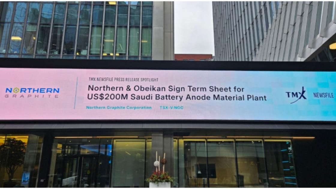 قالت شركة نورذرن جرافيت يوم الأربعاء إنها وقعت اتفاقا مبدئيا مع مجموعة العبيكان السعودية للاستثمار لتطوير وتشغيل منشأة ضخمة لإنتاج مواد الأنود الخاصة بالبطاريات في المملكة.