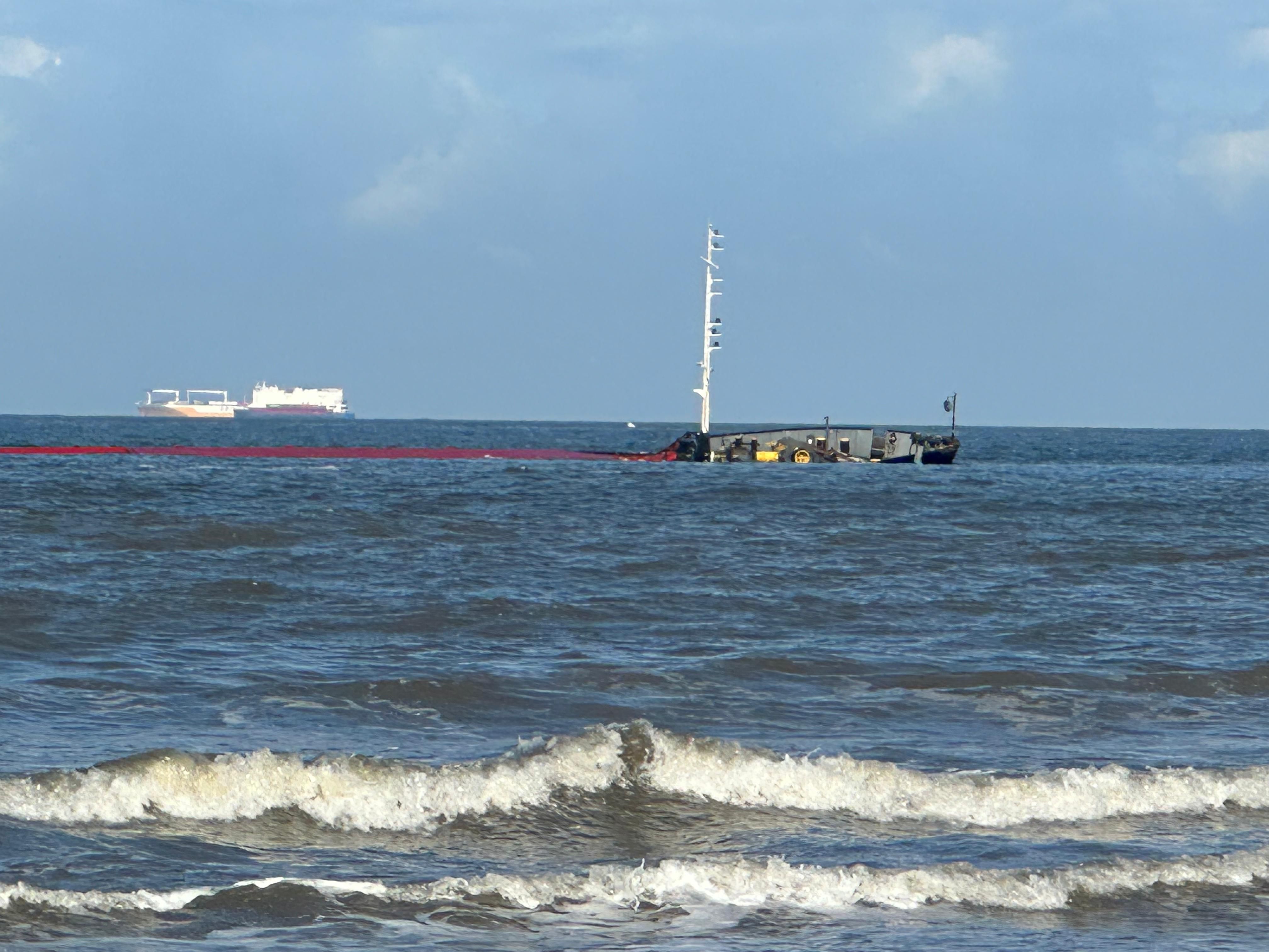 تطورات خطيرة في حالة السفينة الجانحةوأظهرت المشاهد المباشرة تزايد ميل السفينة بشكل ملحوظ، نتيجة تأثرها بحركة الأمواج والتيارات المائية، ما أسفر عن غرق إحدى الكبائن بالكامل، في مؤشر على تدهور حالتها الإنشائية وصعوبة الموقف.