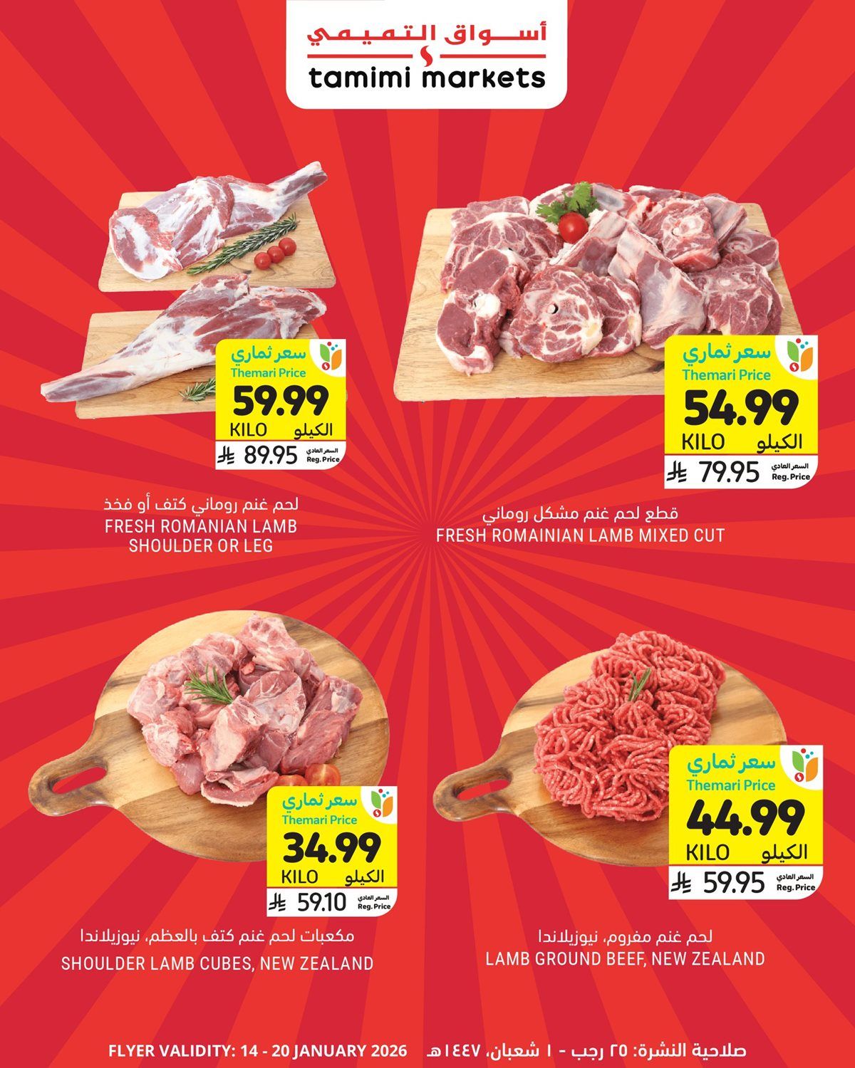 عروض افتتاح فرع التميمي في حي العارض الرياض من 15 حتى 20 يناير 2026 اقوى العروض الخاصة بمناسبة الافتتاح الكبير نرحب بكم جميعا في فرعنا الجديد استفيدوا من اقوى التخفيضات واسعار منافسة على جميع العروض المتوفره في هذا العرض لا تفوتوا كل هذا التوفير ساري ليوم 20 يناير 2026 فقط.