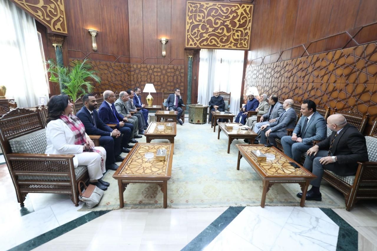 واستقبل الإمام الأكبر شيخ الأزهر الشريف وفد النقابة بحضور الدكتور محمد الجندى أمين عام مجمع البحوث الإسلامية والدكتورة سحر نصر أمين عام بيت الزكاة والصدقات ود. أحمد بركات المشرف على المركز الإعلامى المشيخة والكاتب الصحفى أحمد الصاوي رئيس تحرير جريدة صوت الأزهر.