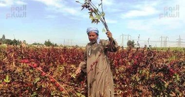 محصول الكركديه يزين الغيطان.. فرحة فلاحين الأقصر بموسم الحصاد