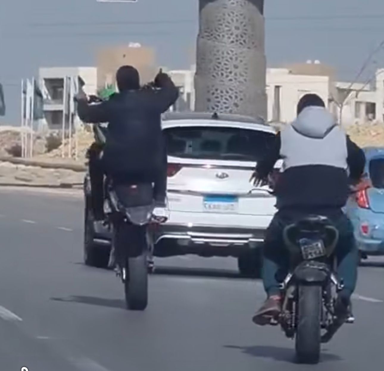 وأظهر الفيديو تعمد قائدي الدراجات قطع الطريق وإعاقة حركة المرور، ما تسبب في حالة من الفوضى المرورية وعرّض حياة المواطنين للخطر، وسط مطالبات من ناشري الفيديو باتخاذ الإجراءات القانونية اللازمة حيال الواقعة وضبط المتورطين.