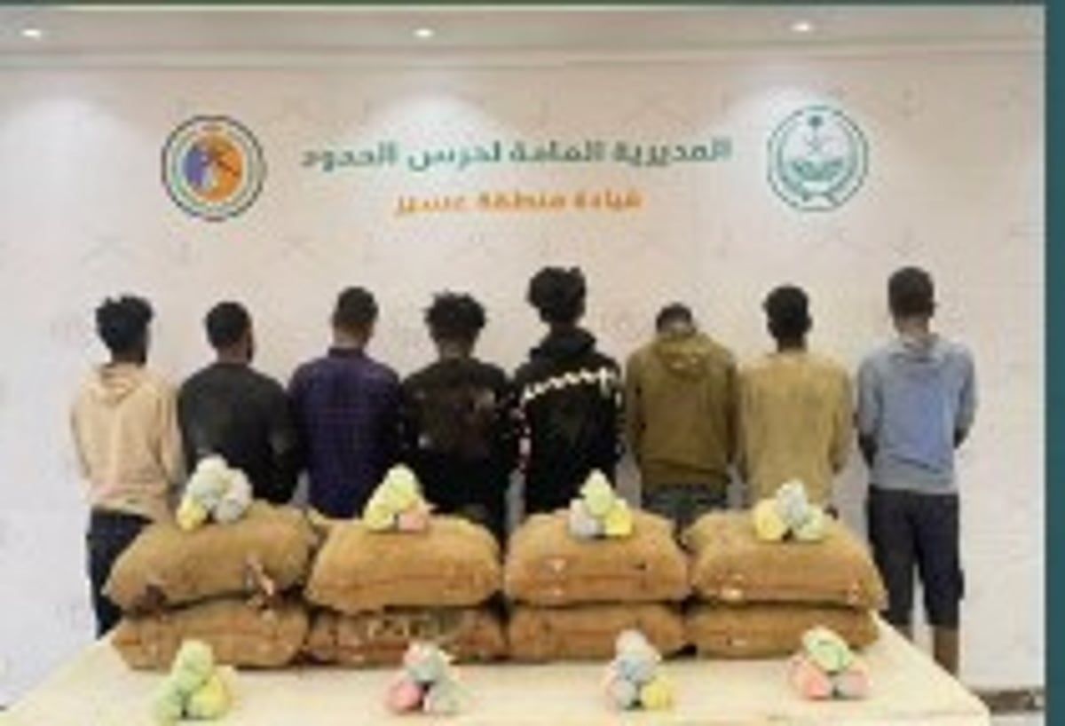 حرس الحدود بعسير يقبض على 8 إثيوبيين لتهريبهم 120 كيلوجرامًا من القات المخدر