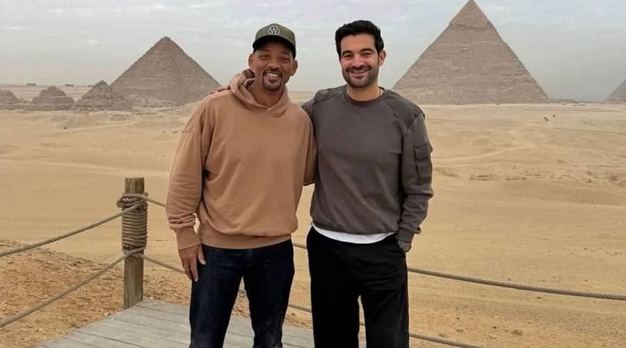استغل النجم العالمي ويل سميث وجوده في مصر، لتصوير إعلان لإحدى الشركات العالمية، لزيارة منطقة الأهرامات، والتقاط بعض الصور، بصحبة فريق العمل.