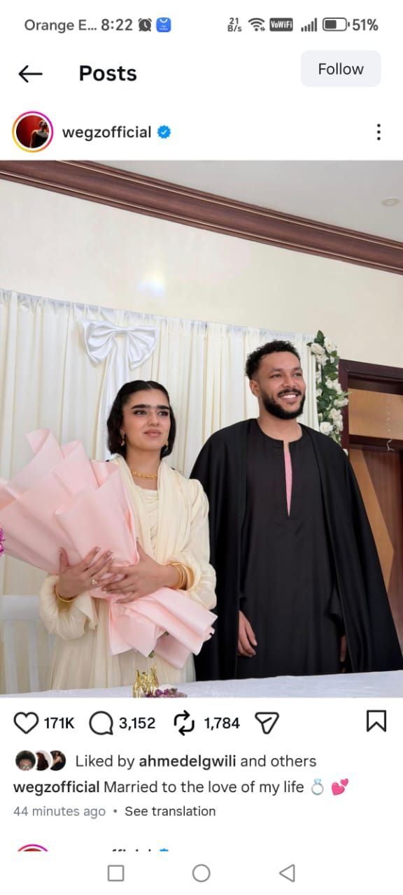 نشر مطرب الراب ويجز صورة مع عروسه نور العزاوي بعد زواجه منها والتي ارتدت فستانا أبيض، وتوالت التهانى والتعليقات على المنشور الذى نشره ويجز عبر صفحته على إنستجرام، معلقا: married to the love of my life