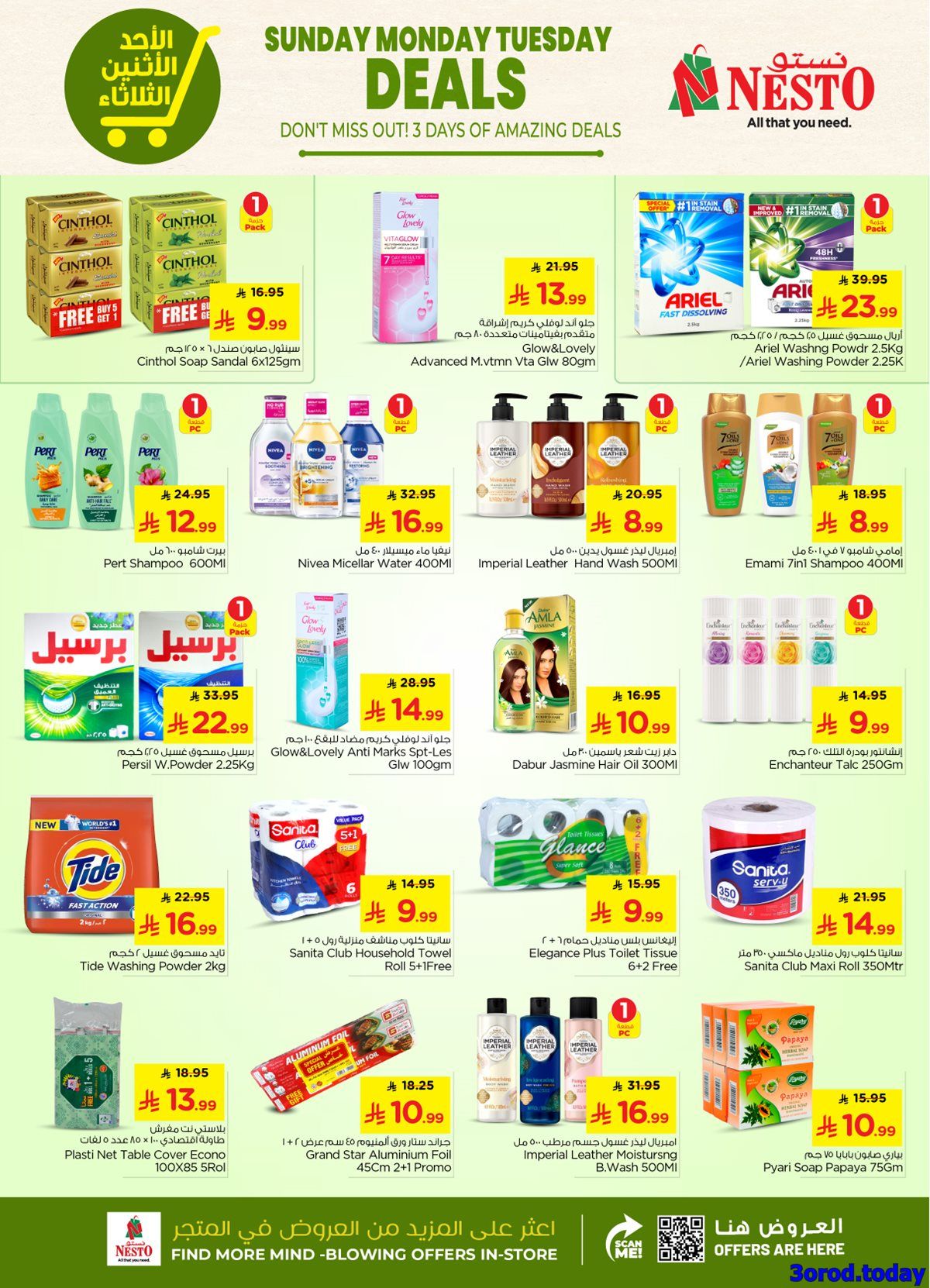 بنقدم ليكم احدث عروض نستو القصيم الاحد 18 يناير 2026 – 29 رجب 1447هـ و تحتوي علي البازلاء الخضراء والفاصوليا الخضراء والفراولة والدجاج والأسماك والجبن واللحوم الباردة والحليب والزبادي في تشكيلة متنوعة و بتوفر كمان الفواكه والخضروات والمكسرات مثل الليمون والبرتقال والجزر والقرنبيط والأفوكادو باسعار مميزة