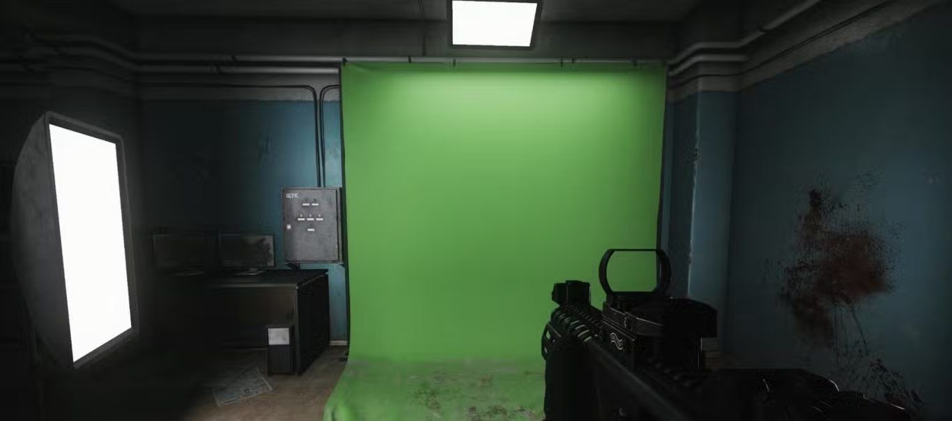 تُعد هذه الغرفة مثيرة للاهتمام لأنها تقدم مشهدًا اعتياديًا وبسيطًا، ما زال محفوظًا رغم الطبيعة المدمرة للحرب في العالم المحيط بها. لا تحتوي الغرفة سوى على شاشة خضراء وكاميرا، ويُرجح أنها أُعدّت قبل اندلاع الصراع، رغم عدم وجود تأكيد رسمي على ذلك. من غير الواضح ما إذا كان هذا التفصيل إشارة مباشرة إلى قاعدة صناع المحتوى الضخمة المحيطة باللعبة، لكنه يظل أثرًا لافتًا لحضارة انهارت مؤخرًا. ويعزز هذا التفصيل بناء العالم داخل اللعبة، إذ يبدو هذا الإعداد اليومي والبسيط في غير مكانه وسط أجواء Escape From Tarkov الممزقة بالحرب.