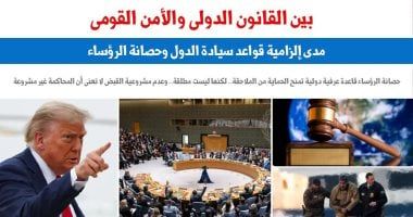 بين القانون الدولى والأمن القومى.. مدى إلزامية قواعد سيادة الدول وحصانة الرؤساء.. حصانة الرؤساء قاعدة عرفية دولية تمنح الحماية من الملاحقة.. ولكنها ليست مطلقة.. وعدم مشروعية القبض لا تعنى أن المحاكمة غير مشروعة