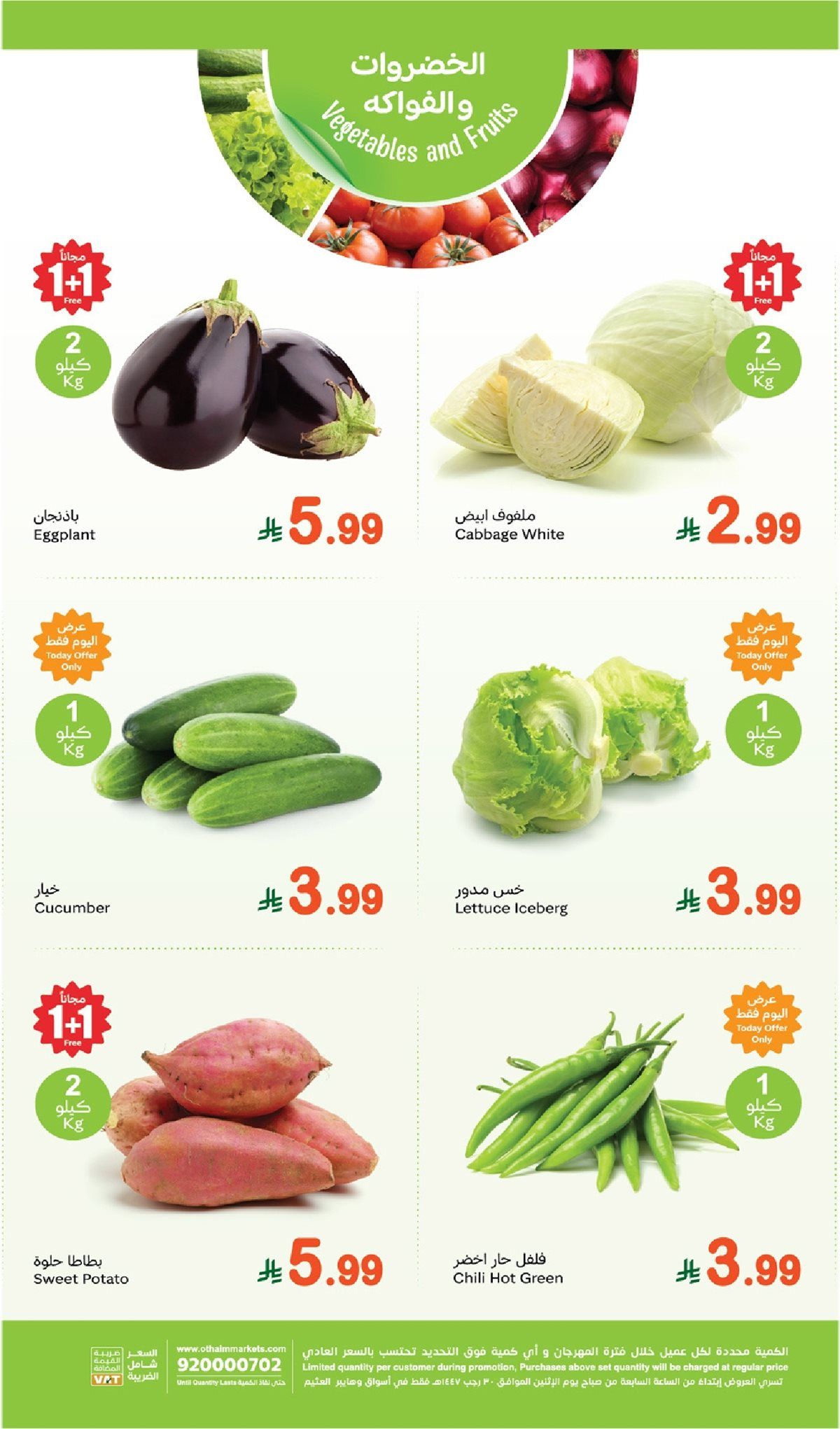 بنقدم ليكم احدث عروض العثيم الاثنين 19 يناير 2026 الموافق 30-7-1447هـ مهرجان الطازج كيلو عليك و كيلو علينا تسوق ووفر اقوي المنتجات الغذائية و الخضروات و الفواكه الطازجة بجانب ذلك تشمل ايضا عروض اسواق العثيم اشهي اصناف اللحوم و اجهزة المطبخ الرائعة و باسعار مميزة مع توفير 1+1 مجانا لا تفوت الفرصة