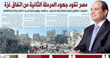 تنشر اليوم السابع فى عددها الصادر غدا، تفاصيل هامة حول العديد من الأحداث الجارية على الساحتين الداخلية والخارجية: مصر تقود جهود المرحلة الثانية من اتفاق غزة