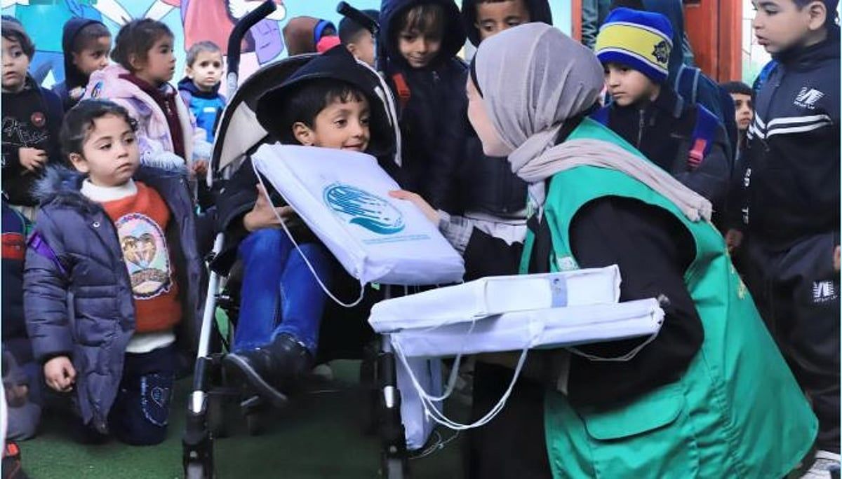 في إطار الحملة الشعبية السعودية لإغاثة الشعب الفلسطيني الشقيق في القطاع؛ وزع مركز الملك سلمان للإغاثة والأعمال الإنسانية ملابس شتوية على الأطفال في المدارس ورياض الأطفال وسط قطاع غزة.