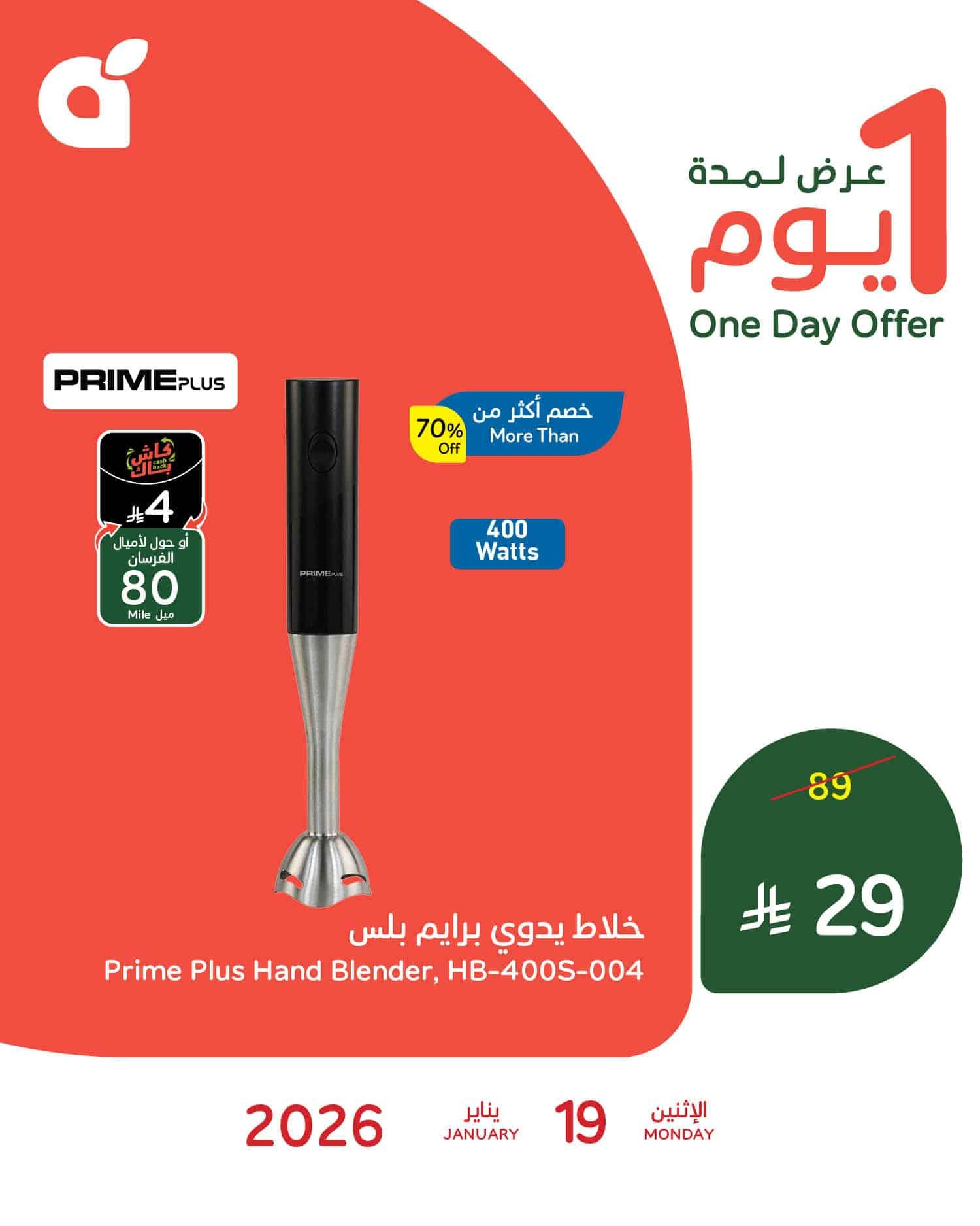 بنقدم ليكم اليوم احدث عروض بنده السعودية الاثنين 30-7-1447هـ و تحتوي علي خلاط يدوي برايم بلس و بتشمل كمان طقم صحون إيسال و باسعار مميزة في صفقات حصرية متاحة اليوم فقط ابقوا معنا علي موقعكم عروض توداي ليصل اليكم كل جديد عن عروض السعودية