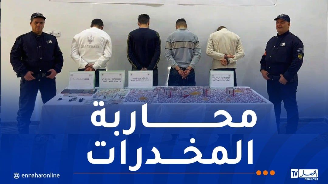 حيث أسفرت العملية عن توقيف (04) أشخاص مشتبه فيهم تتراوح أعمارهم بين 28 و 37 سنة. ضبط و حجز 3900 كبسولة من المؤثرات العقلية لدواء بريغابالين 300 مع، مركبتين سياحية و نفعية. تستعملان في نقل المؤثرات العقلية، دراجة (01) نارية تستعمل في توزيع المؤثرات العقلية بين الأحياء. 05 هواتف نقالة، و197500.00 دج مبلغ مالي من عائدات الترويج للسموم.