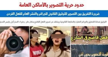 الإثنين، 19 يناير 2026 12:02 مرصد موقع "برلماني"، المتخصص في الشأن التشريعى والنيابى، في تقرير له تحت عنوان: "حدود حرية التصوير فى الأماكن العامة"، استعرض خلاله ضرورة التفريق بين التصوير للتوثيق كضمانة للتحقيق فى الجرائم الخطرة والمتابعة القانونية، والتصوير لفعل فاضح لشخص فى مكان عام، وضرورة الفهم أن "الستر أولى وليس التستر"، فما زالت إشكالية حدود حرية التصوير في الأماكن العامة تُثير تساؤلات الكثيرين حول القياس بين حق تصوير الجرائم في الأماكن العامة وحق تصوير الأشخاص في أماكن عامة أخرى.