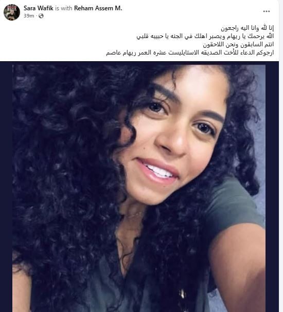 الله يرحمك يا ريهام ويصبر اهلك في الجنة يا حبيبة قلبي انتم السابقون ونحن اللاحقون ارجوكم الدعاء للأخت الصديقة الاستايليست عشره العمر ريهام عاصم".