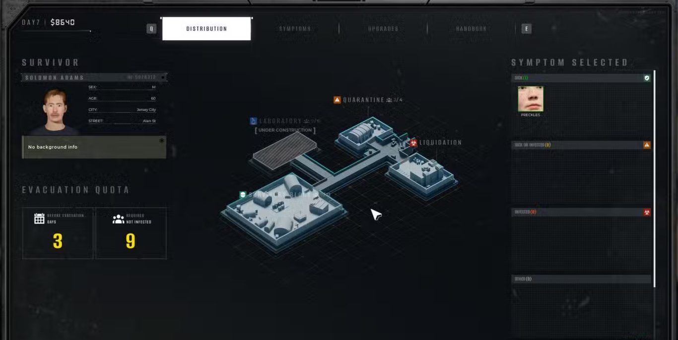 لو كان Solomon يحمل علامات عدوى واضحة لكان من السهل إرساله إلى Quarantine دون التفكير وهو ما يلغي دور التحقيق والانتباه المطلوب من اللاعب.