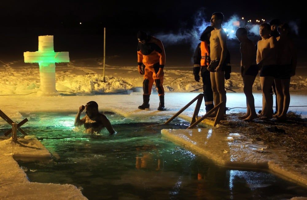 شهدت العاصمة الروسية موسكو مظاهر احتفال الأرثوذكس بعيد الغطاس، حيث يغتسل الأرثوذكس الروس في مياه بركة متجمدة خلال احتفالات عيد الغطاس، وذلك حسبما نشرت وكالة الأنباء الاوربية صورا.