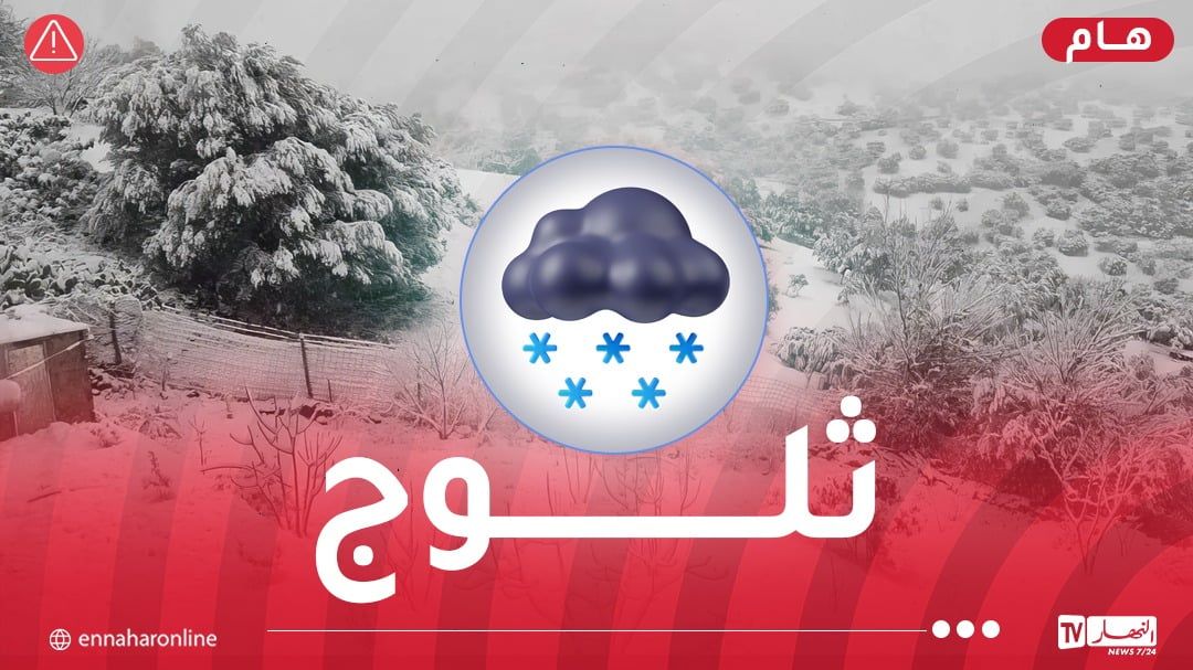 أفاد تنبيه لمصالح الأرصاد الجوية، بتساقط ثلوج على المرتفعات التي يترواح علوها بين 1000 و1200 متر، على عدة ولايات من الوطن.