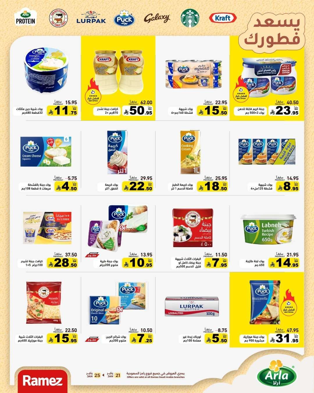 عروض أسواق رامز السعودية الأربعاء 21-1-2026 الموافق 2 شعبان 1447هـ تقدم منتجات غذائية منها جبنة شيدر ولحم مبرد ومخبوزات وزيت جوز وحلويات وشوكولاتة وقهوة وزيت زيتون وأرز فاخر وفاكهة ومأكولات بحرية ودجاج وتكتمل بأجهزة منزلية تشمل صانعة قهوة وفرن بيتزا وخلاط ومكواة بخار وشاشة ذكية وقلاية هوائية ومحضرة طعام ومكنسة