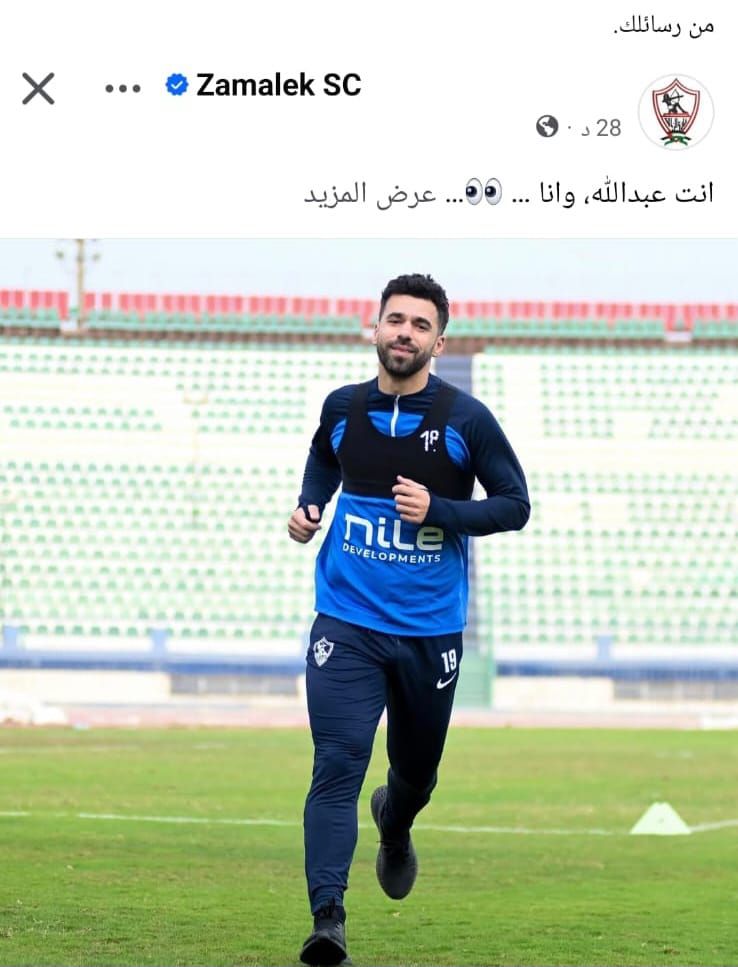 ونشرت الصفحة الرسمية للزمالك صورة لعبدالله السعيد لاعب الفريق مع التعليق عليها بعبارة : انت عبدالله، وانا … ????