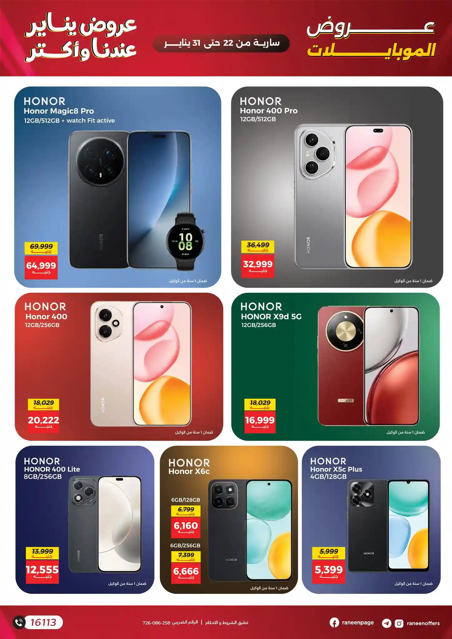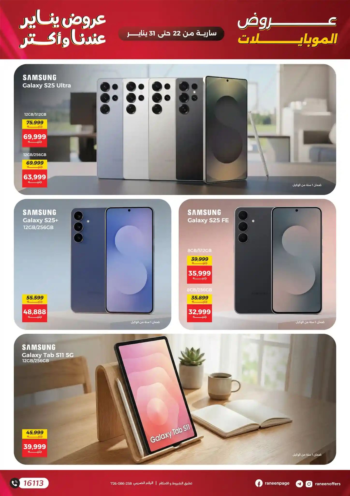 عروض رنين اليوم 22 يناير حتى 31 يناير 2026 الموبايلات والاكسسوارات بجميع فروع رنين