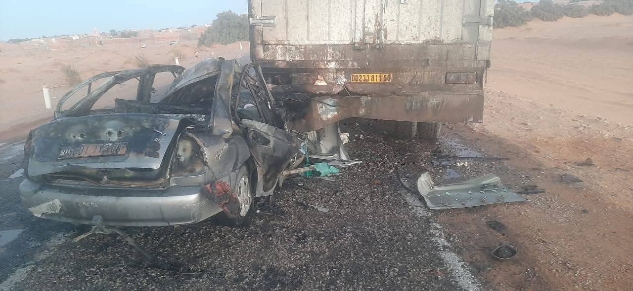 لقي شخص حتفه اليوم قي حادث مرور متبوع بحريق بالقرب من قصر النفيس الطريق الوطني رقم 06 ولاية أدرار.