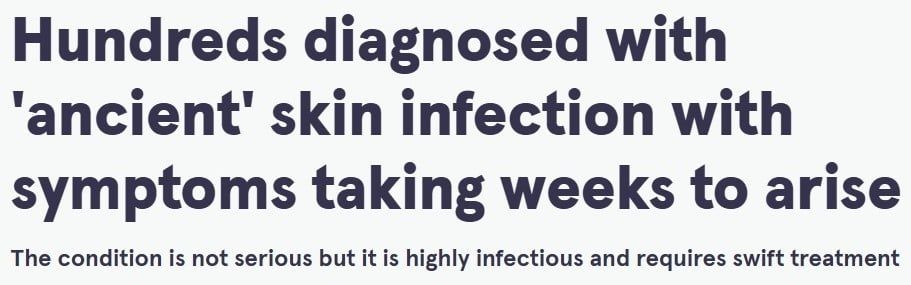 ووفقا لصحيفة "The Mirror"، يعد الجرب مرض شديد العدوى ينتقل عن طريق التلامس الجلدي المباشر، وهذا يعني أنه إذا أصيب شخص واحد، فقد يكون جميع أفراد أسرته معرضين للخطر.