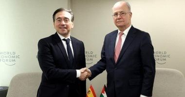 بحث رئيس الوزراء الفلسطيني محمد مصطفى، على هامش مشاركته في منتدى دافوس الاقتصادي، مع وزير خارجية إسبانيا خوسيه مانويل ألباريس، اليوم الخميس، التنسيق وتعزيز الدعم السياسي والدبلوماسي والمالي لدولة فلسطين.