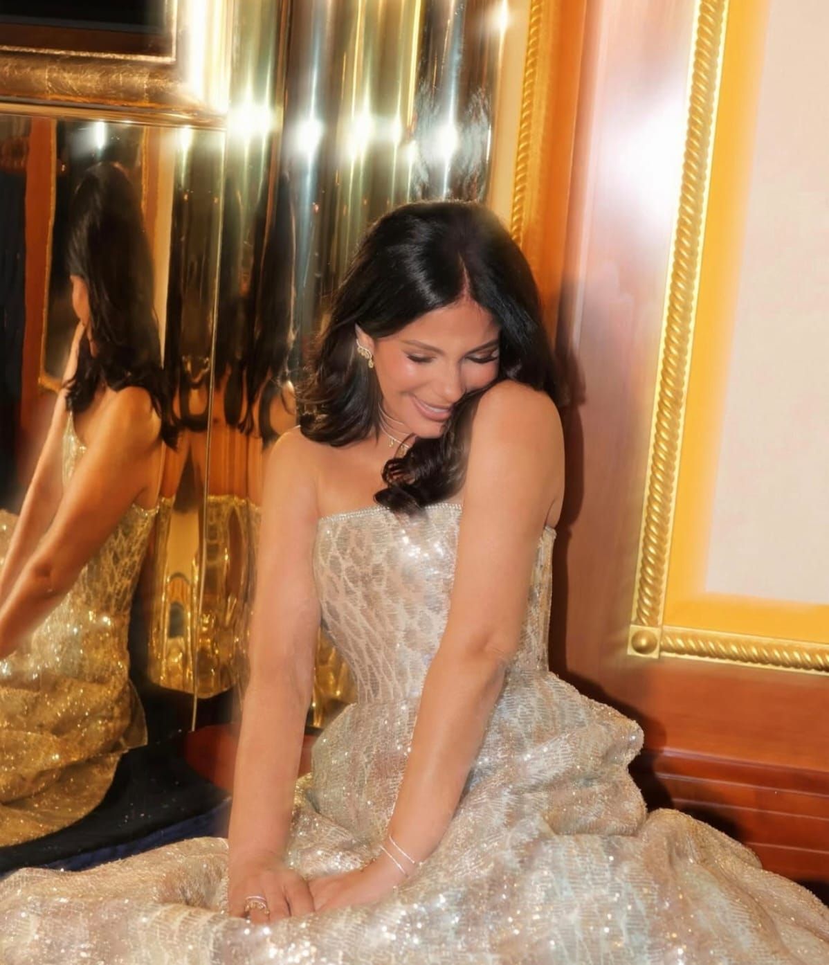 تميز الفستان بلمعانه الملفت وتصميمه العصري، فيما اختارت مني أن تُكمل الإطلالة بـ شعر منسدل، ما منحها مظهرًا شقيًا ومرحًا، يعكس شخصيتها المرحة والحيوية، إذ شاركت صورًا للوك الجديد عبر صفحتها على إنستجرام، ليتفاعل معها الجمهور بشكل واسع، معبرين عن إعجابهم بجاذبيتها التي تنافس بها نجمات العشرينات.