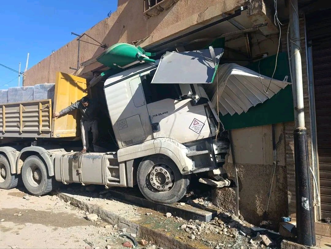 سجلت مدينة بريزينة بولاية البيض، مساء اليوم الجمعة، حادث مرور تمثل في اصطدام شاحنة ذات مقطورة بواجهة لأحد الصيدليات الخواص.
