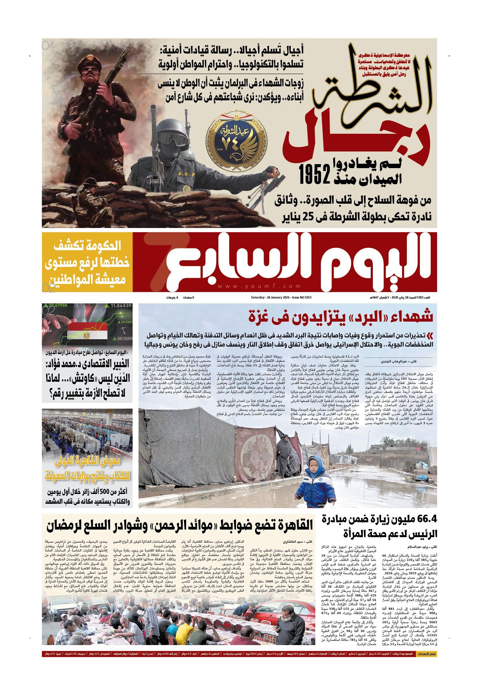 تتابع اليوم السابع فى عددها المطبوع الصادر غدا العديد من القضايا والملفات المهمة، أهمها.. عيد الشرطه 74 عاما، أجيال تسلم أجيالا.. رسالة قيادات أمنية تسلحوا بالتكنولوجيا واحترام المواطن أولوية..