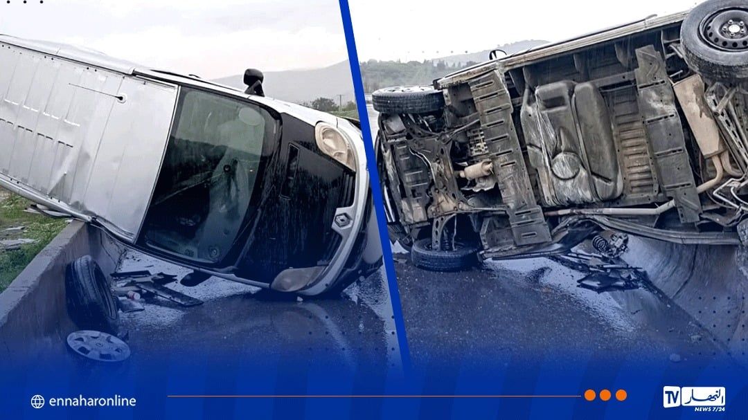 البويرة.. 4 جرحى في انحراف وانقلاب سيارة نفعية