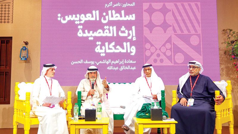 في مئويته، خصص مهرجان طيران الإمارات للآداب، جلسة خاصة لسيرة الشاعر الإماراتي سلطان بن علي العويس، عنوانها «بين إرث القصيدة والحكاية» بوصفه إحدى الشخصيات التي جمعت بين الريادة الاقتصادية والالتزام الثقافي والإنساني والوطني، وذلك بمشاركة كل من: الدكتور يوسف الحسن، والدكتور عبدالخالق عبدالله، وإبراهيم الهاشمي، الذين قدموا شهادات متقاطعة أعادت رسم صورة العويس الإنسان والمثقف ورجل الأعمال، لتضيء أثره المستمر، وتستجمع في قراءة معمقة، أبرز ركائز مسار رجل آمن بقوة الكلمة ودورها في بناء المجتمع، وأسهم مبكراً في دعم التنوير والتعليم والإبداع المحلي والعربي.