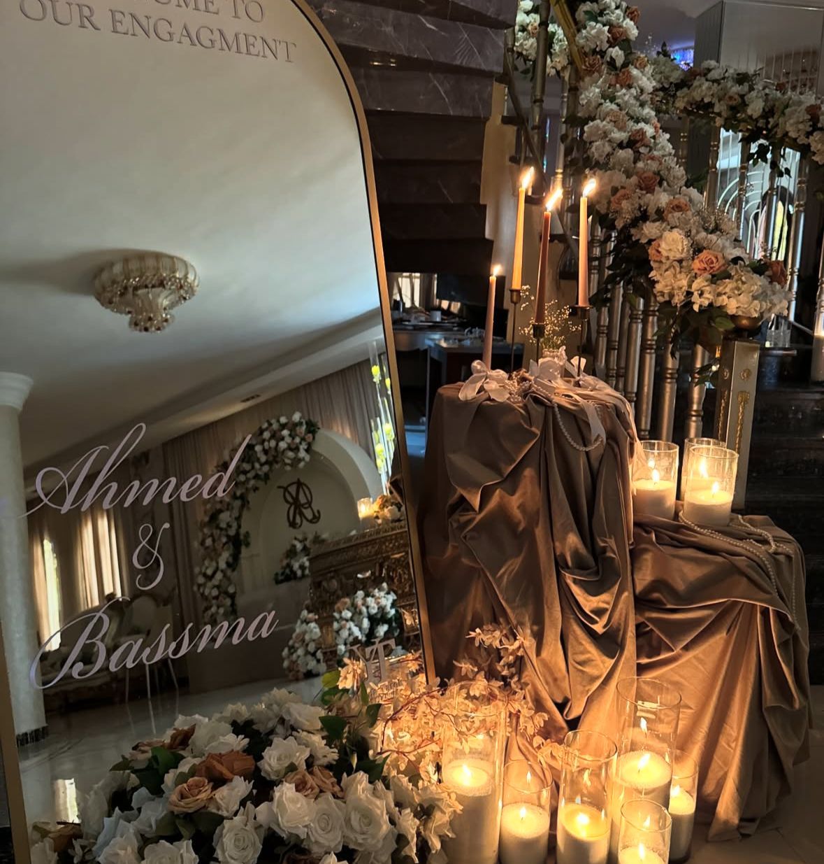 - إطارات الصور: يمكن للعروس إضافة لمسة شخصية بوضع صور تذكارية داخل إطارات مزيّنة باللؤلؤ لـزينة الطاولات؛ مما يجعل ديكوراتها فريدة من نوعها وتنبض بالذكريات.