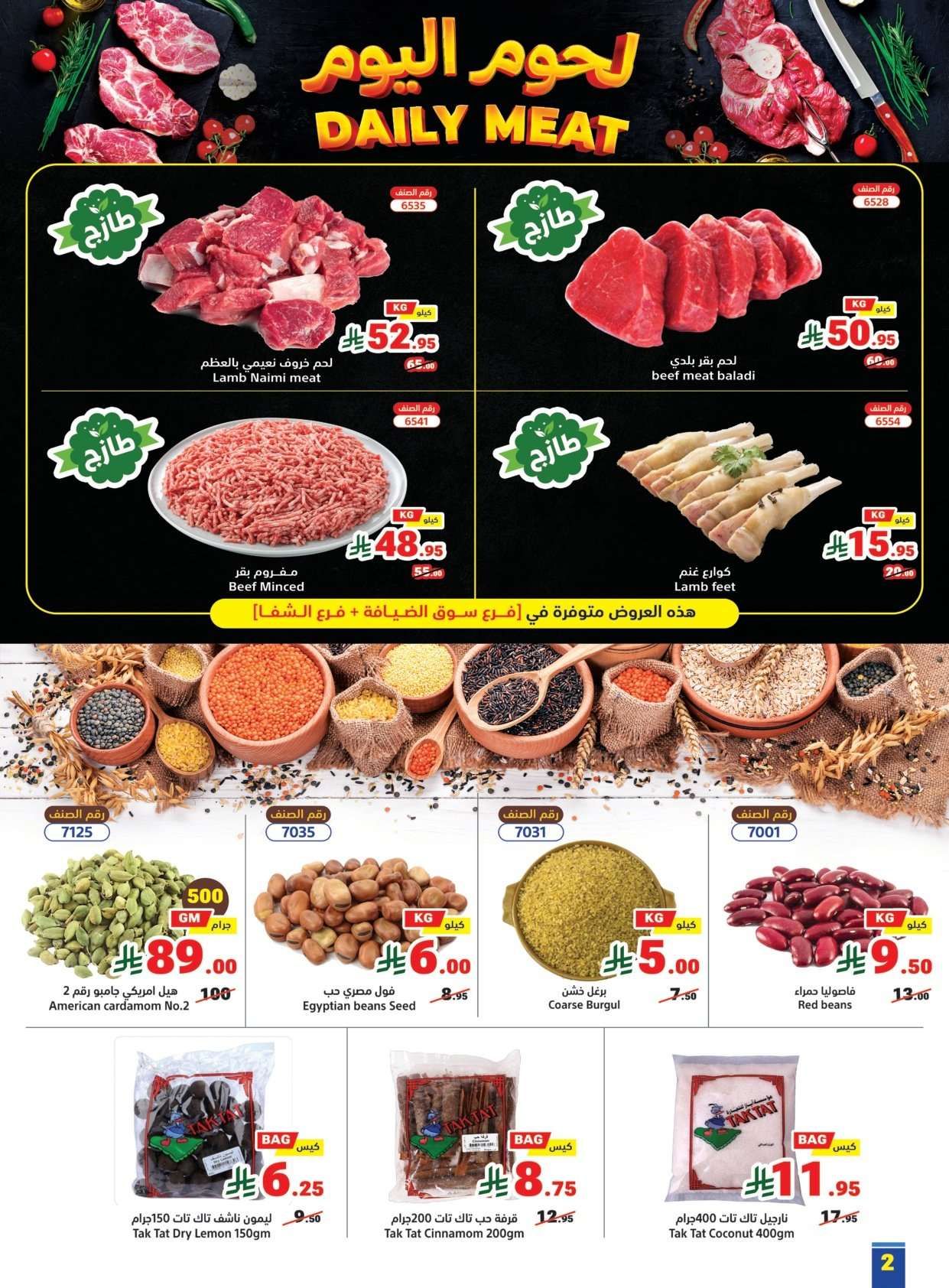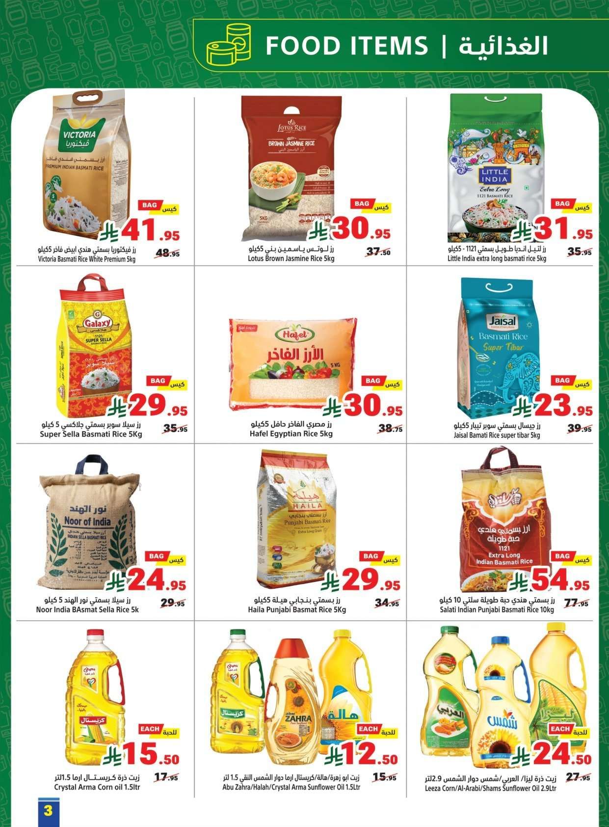عروض متاجر السعودية الاسبوعية الاحد 25-12-2026 الموافق 6 شعبان 1447هـ و تحتوي علي الأرز بالإضافة إلى تشكيلة من زيوت الطهي كما تتضمن العروض حليب نيدو المجفف وصدور دجاج تندر من أمريكانا ورويال ولحوم طازجة مثل لحم خروف نعيمي ولحم بقر بلدي ومفروم بقر وكوارع غنم مع توفر أدوات منزلية باقل الاسعار