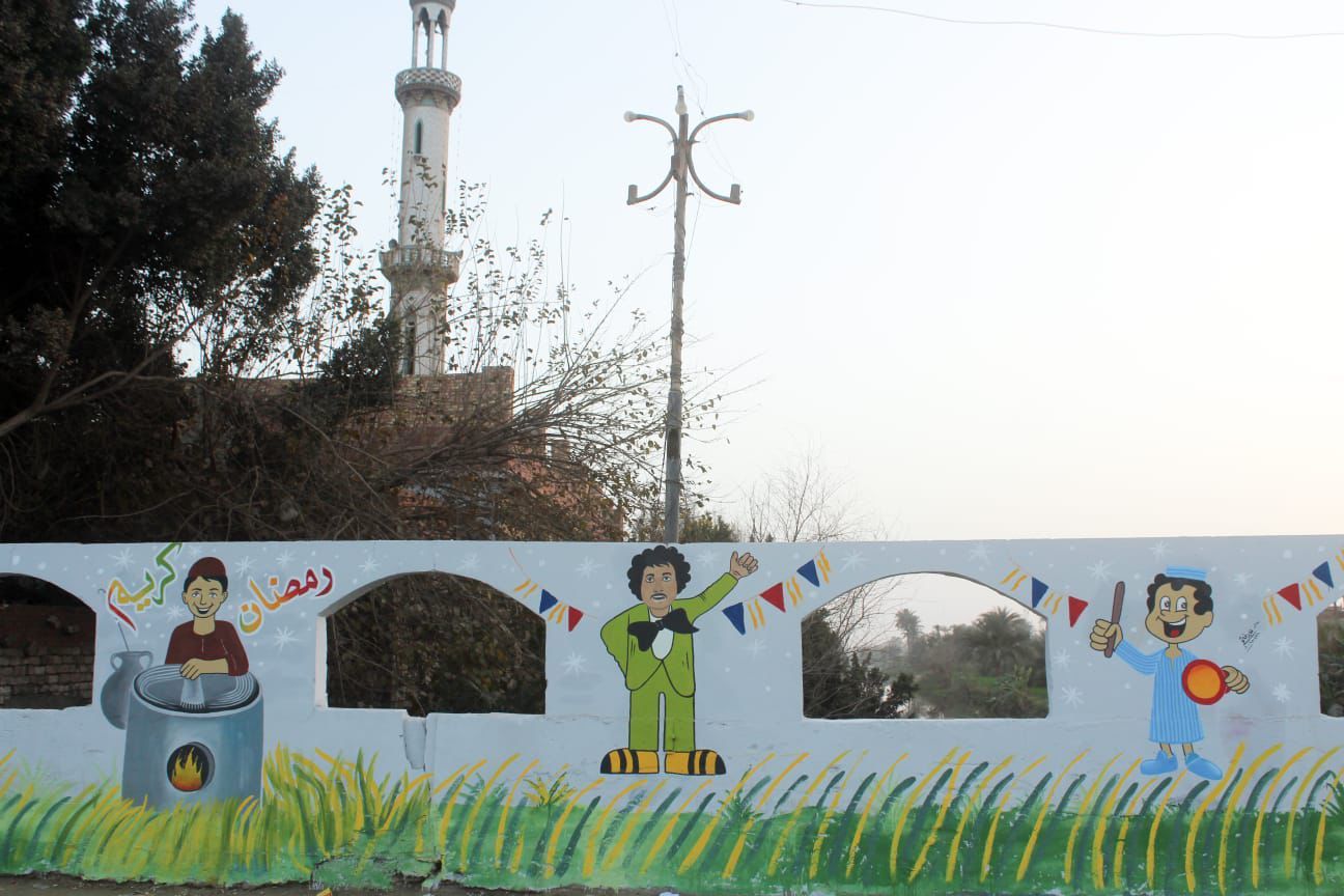 أهالى بهبيت يجملون مدخل قريتهم بروح رمضانية
