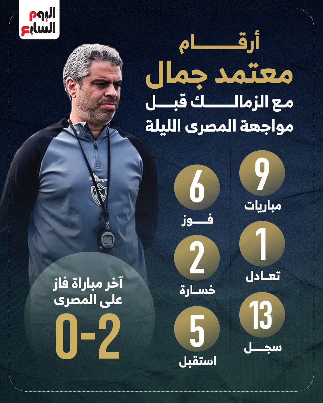 ويسعى معتمد جمال، المدير الفني للفريق الأول لكرة القدم بنادي الزمالك، لتحقيق الفوز في مباراة اليوم أمام المصري البورسعيدي، ضمن منافسات الجولة الثالثة من دور المجموعات ببطولة كأس الكونفدرالية الأفريقية، في مواجهة لا تقبل التفريط في النقاط.