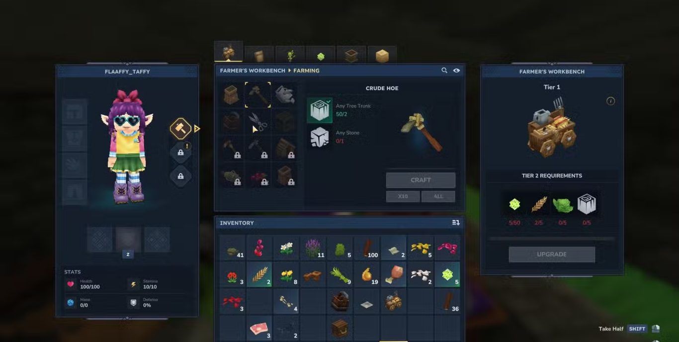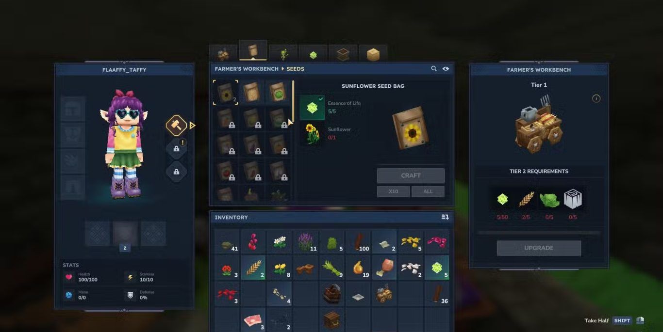 ينقسم Farmer’s Workbench إلى ست فئات رئيسية تشمل Farming و Seeds و Saplings و Essence of Life و Planters و Decorative حيث تحتوي كل فئة على قائمة تصنيع موسعة مرتبطة بالمحاصيل والنباتات والأدوات الزراعية وهو ما يجعل هذه المحطة العمود الفقري لأي نظام زراعي ناجح داخل اللعبة.