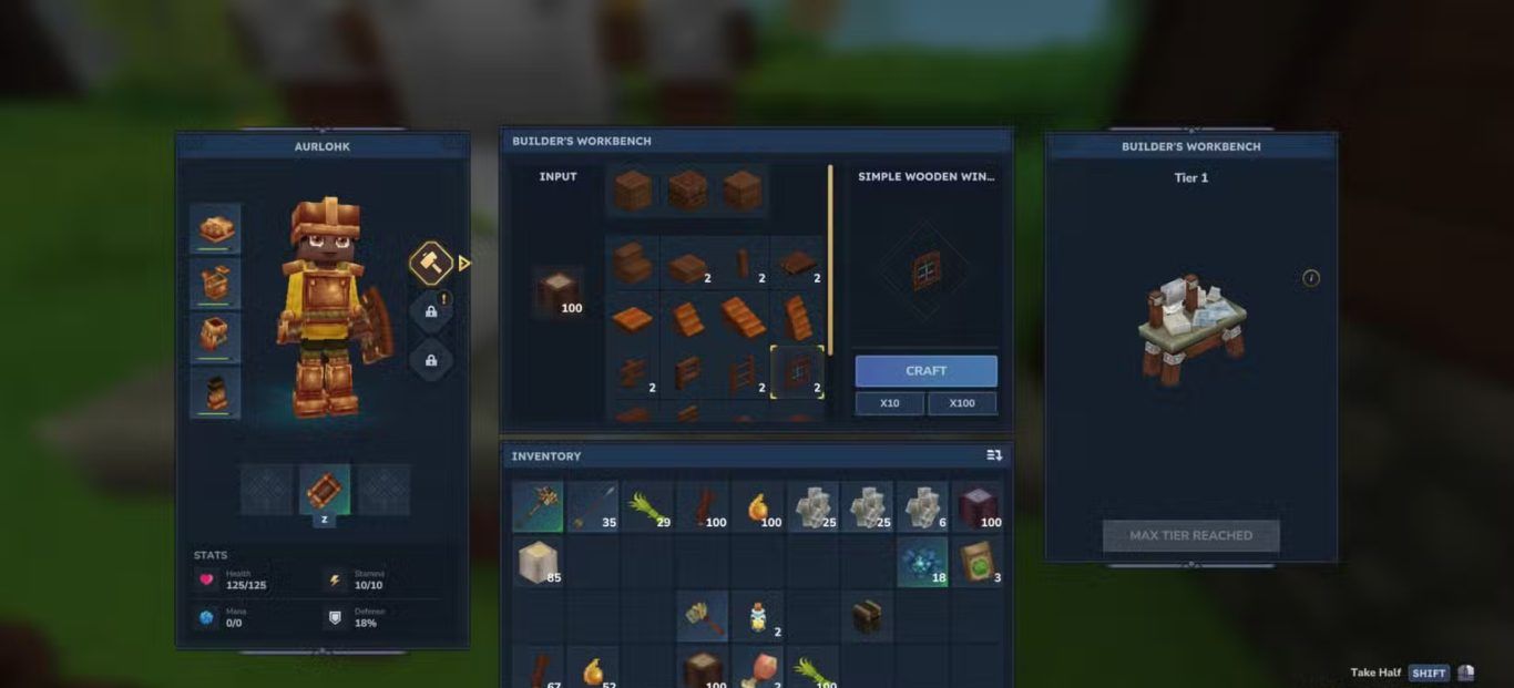 استخدام Builder’s Workbench لتحويل Wood وصناعة Windows في لعبة Hytale