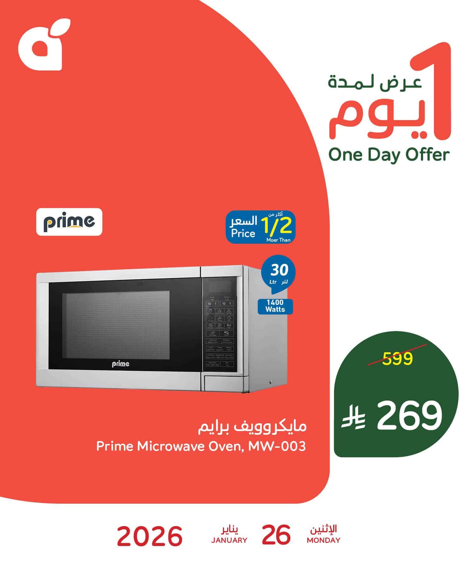 • سعر مايكروويف برايم سعة 30 لتر بـ 269 ريال سعودي