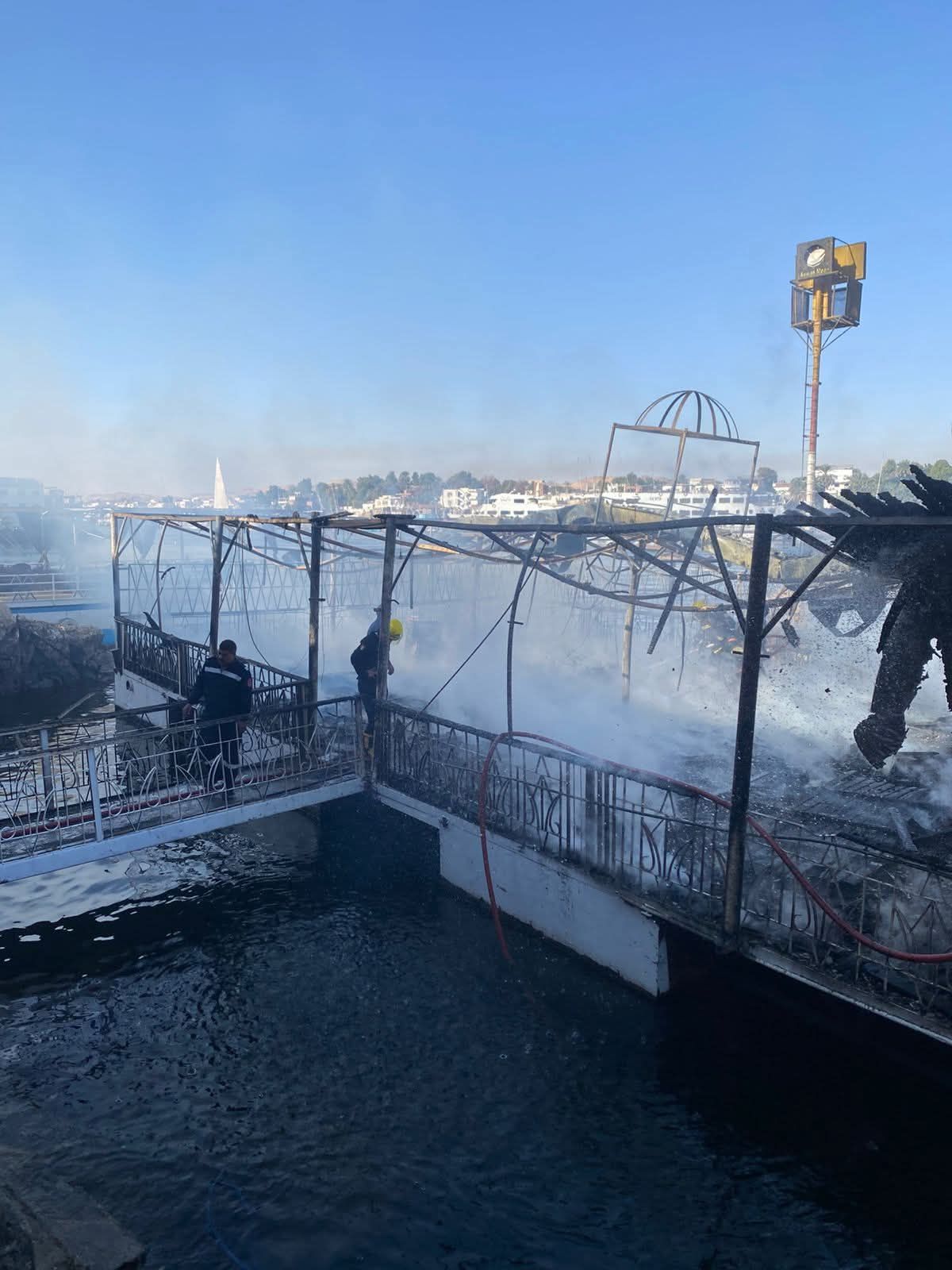 تأمين الموقعفرضت الأجهزة المعنية كردوناً أمنياً بمحيط المركب السياحى، وتم إبعاد المواطنين حفاظاً على سلامتهم، فى الوقت الذى واصلت فيه فرق الإطفاء أعمال التبريد والفحص للتأكد من إخماد الحريق بشكل كامل وعدم تجدد الاشتعال.