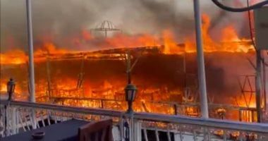 الإثنين، 26 يناير 2026 10:54 صسيطرت قوات الحماية المدنية بأسوان، على حريق هائل شب صباح اليوم، داخل مطعم عبارة عن مركب سياحى راسى على كورنيش النيل بمدينة أسوان، بالقرب من منطقة الشارع الجديد، ما أسفر عن تصاعد كثيف لأعمدة الدخان.