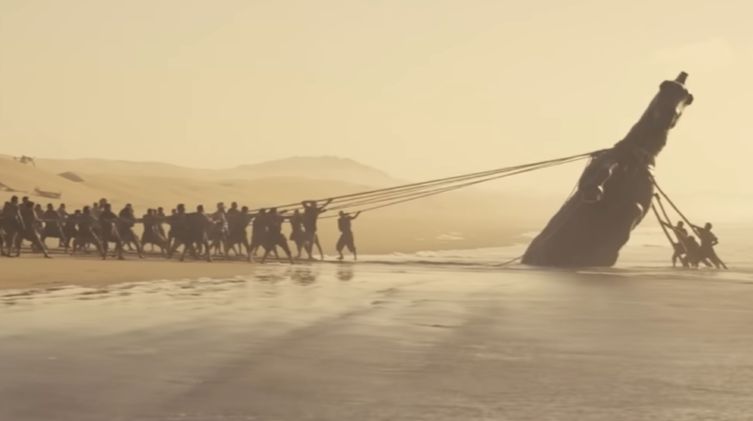 كما تضمن المقطع الدعائي الأول مشاهد أسطورية أخرى من بينها العملاق ذو العين الواحدة وهو يدخل كهفًا مكتظًا بالجنود، إلى جانب لقطات للموتى وهم ينهضون من باطن الأرض، في تأكيد على الطابع الملحمي والخيالي الذي يطغى على رؤية الفيلم.