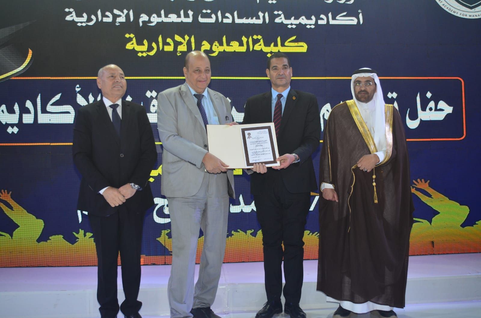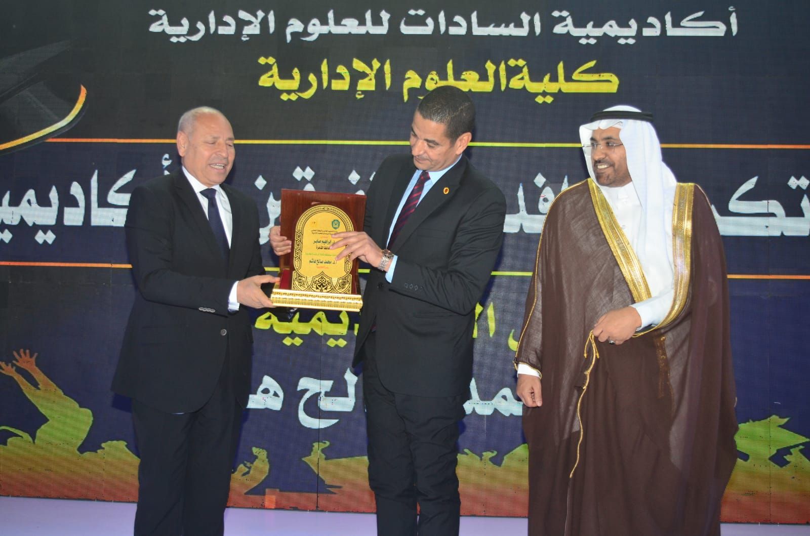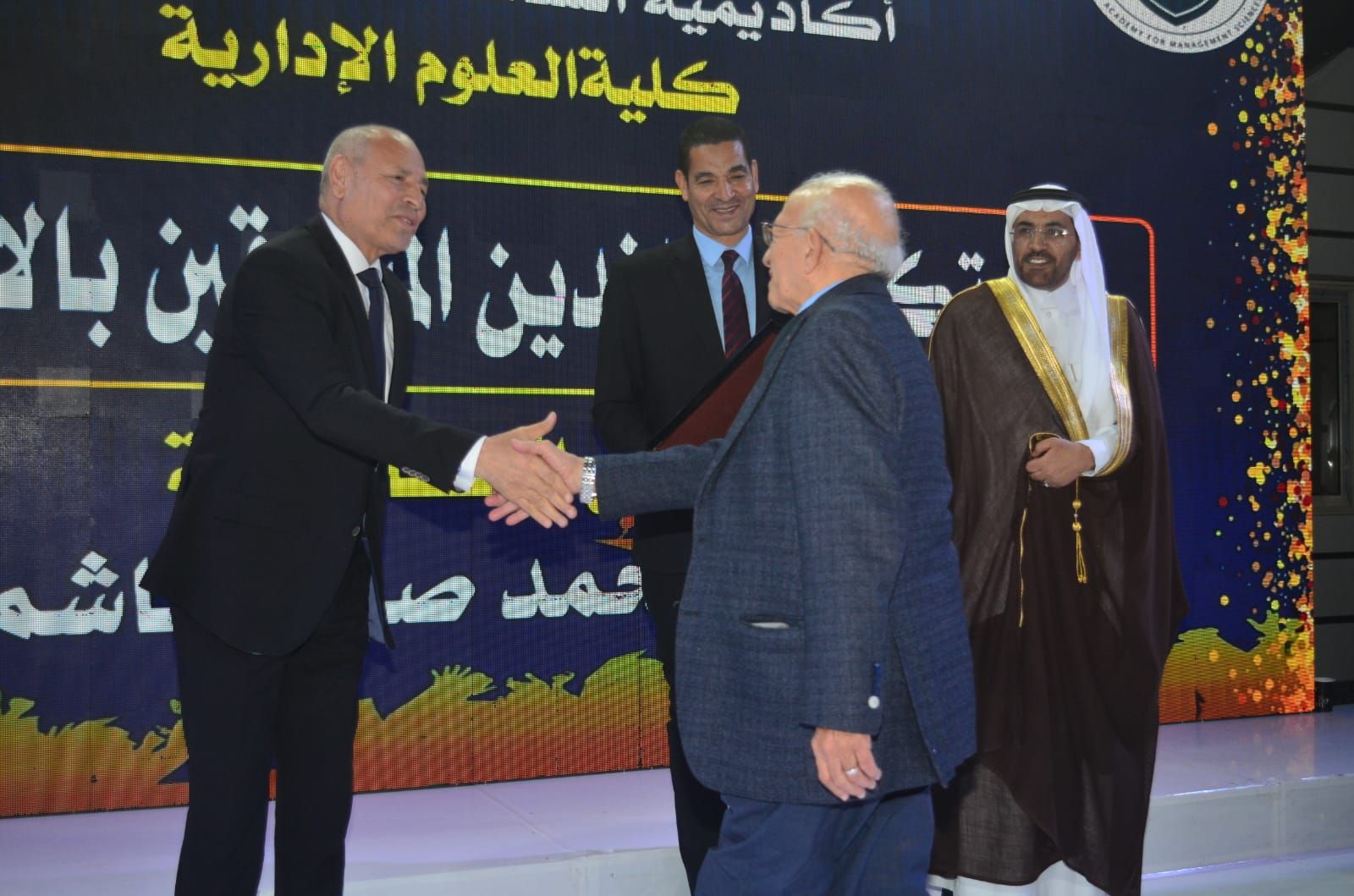 وكرّمت الأكاديمية في بداية الحفل المتفوقين من حملة الدكتوراة والماجستير بعدد من التخصصات الحيوية، من بينها إدارة الأعمال، وإدارة المستشفيات، والإدارة الرياضية، وإدارة التأمين الطبي، وإدارة الموارد البشرية، والإدارة العامة والمحلية، والاقتصاد، والمحاسبة، ونظم المعلومات، وإدارة الاستثمار والتمويل، وغيرها من التخصصات التي تلبي احتياجات سوق العمل العربي.