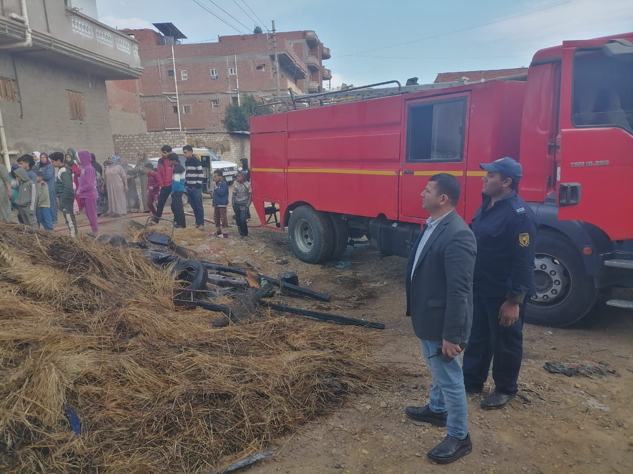 اخماد الحريق بوجود الأهالي